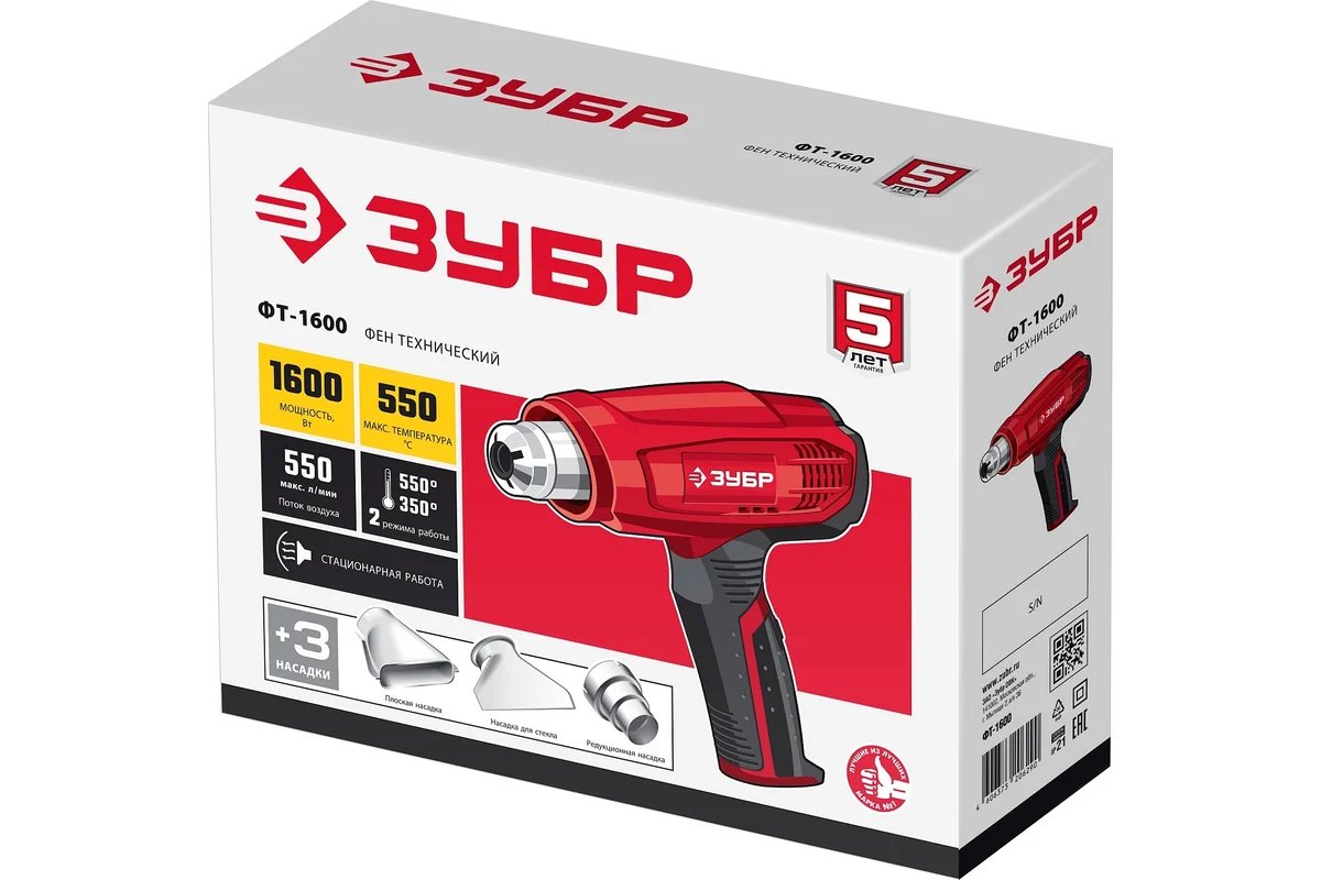 Изображение "Фен технический 1600Вт ЗУБР", представленное на сайте, может несущественно отличаться от реального.