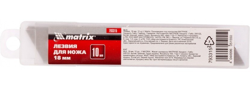 Изображение "Лезвия для ножей 18мм (10шт) MATRIX", представленное на сайте, может несущественно отличаться от реального.